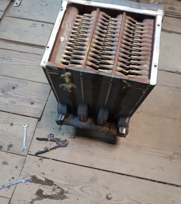 Ремонт газового напольного котла Protherm 30 KLOM, была обнаружена утечка между секциями теплообменника, в результате диагностики выявили, что прогнили межсекционные гильзы. Заменили на новые, провели промывку теплообменника.