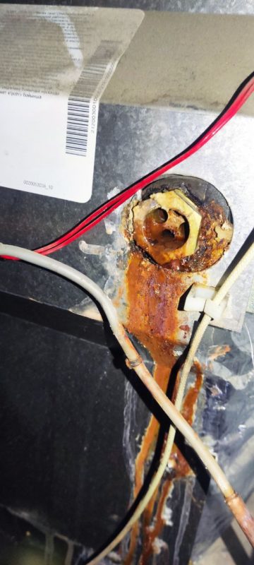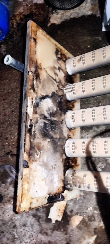 Ремонт газового напольного котла Protherm KLOM 17 версии. Устранили течь заменив гильзу, заменили изоляцию, старая размокла и развалилась из-за утечки.