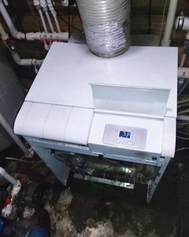 Ремонт газового напольного котла Protherm KLOM 17 версии. Устранили течь заменив гильзу, заменили изоляцию, старая размокла и развалилась из-за утечки.