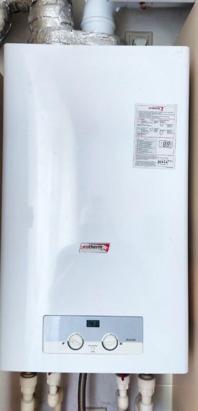 Ремонт газового настенного котла Protherm Jaguar, жалобы клиента не греет горячую воду и капает с котла. В ходе диагностики выявили неисправность трёхходового клапана и сервопривода. Произвели замену и котел начал работать в штатном режиме.