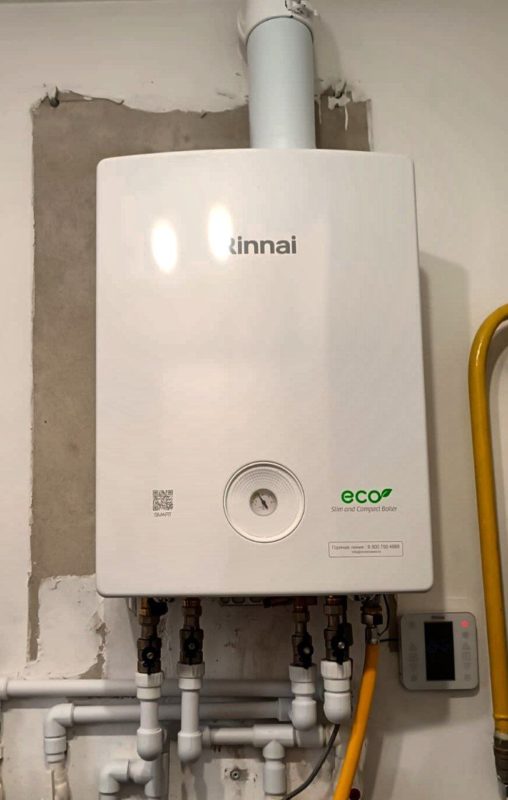 Заменили газовый настенный котел Baxi Nuvola на новый газовый настенный котел Rinnai RE-30. Котел оборудован встроенным wi-fi модулем, что позволяет управлять им через телефон, без установки дополнительного оборудования.